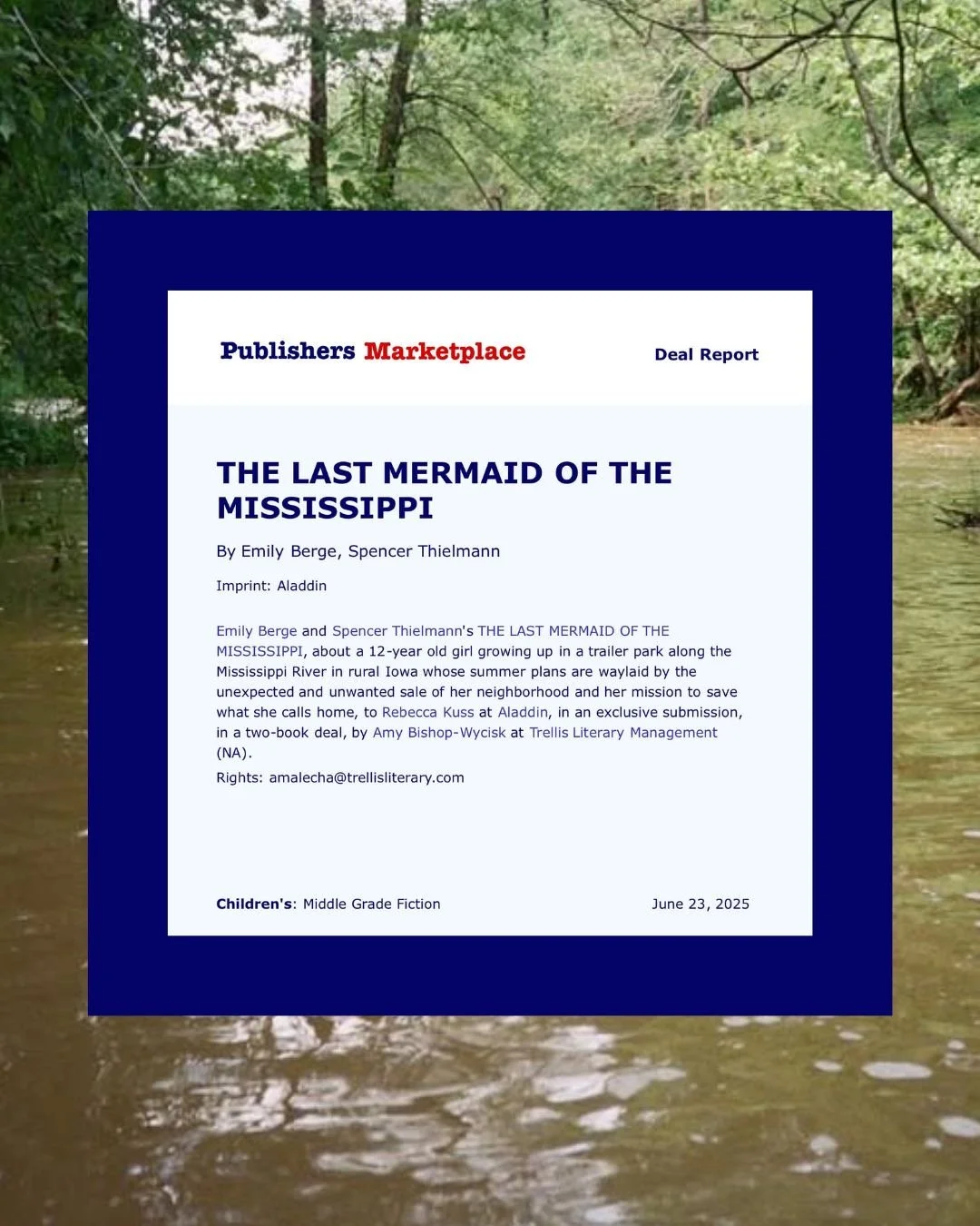 The Last Mermaid ofthe Mississippi Sold to Aladdin Books, an imprint of Simon & SchusterPub date 2027Subscribe below for updates!